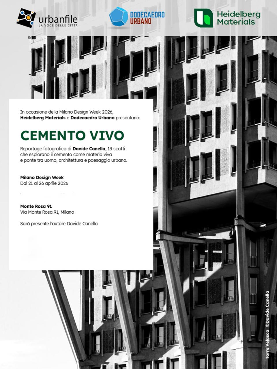 In occasione della Milano Design Week 2026, arriva in Monte Rosa 91 “Cemento Vivo”, mostra fotografica di Davide Canella, promossa da Heidelberg Materials e realizzata in collaborazione con Urbanfile | Dodecaedro Urbano. L’esposizione sarà visitabile dal 21 al 26 aprile 2026.