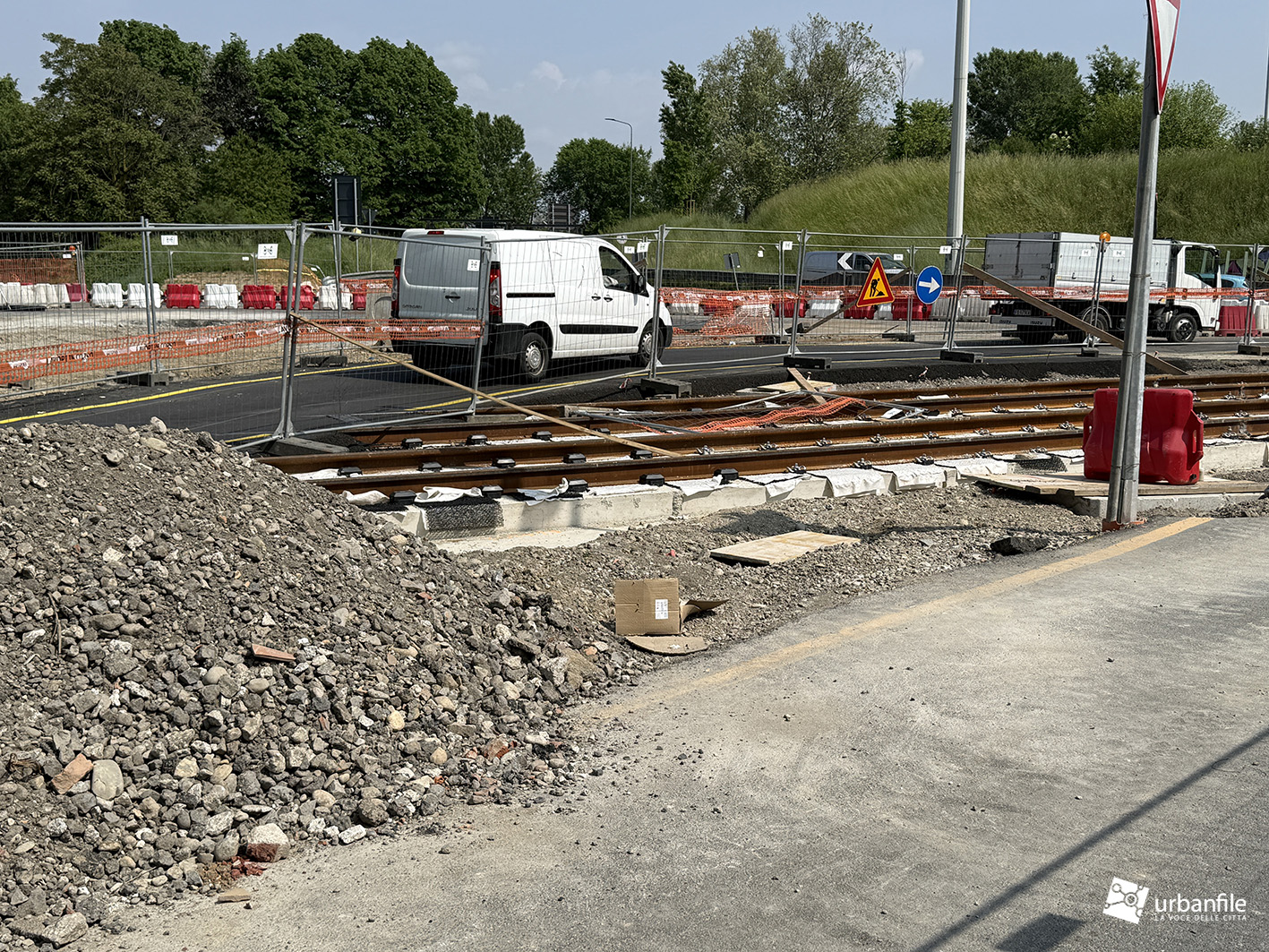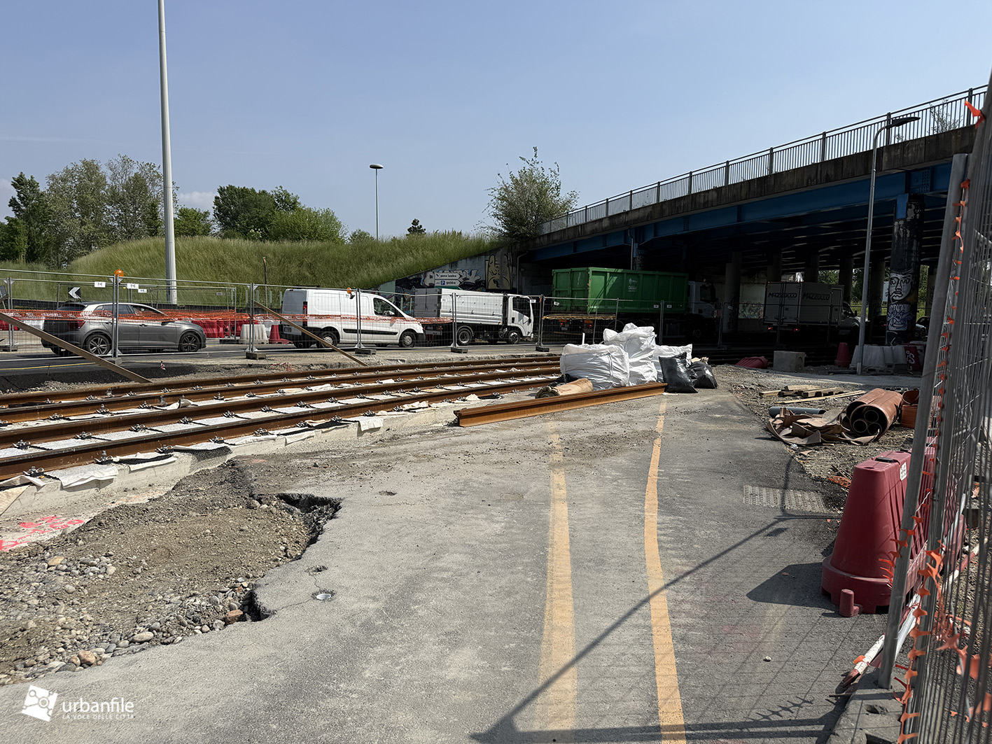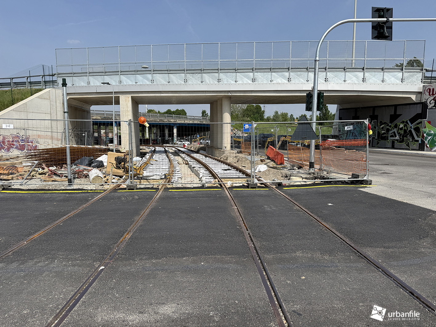 Nel frattempo sono già state posate le rotaie nel tratto compreso tra il ponte e la rotonda, mentre i lavori proseguono anche oltre, sotto il cavalcavia di via Palmanova, segnando un ulteriore avanzamento dell’infrastruttura.