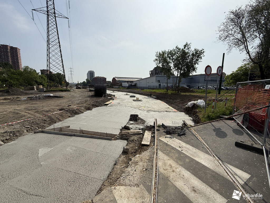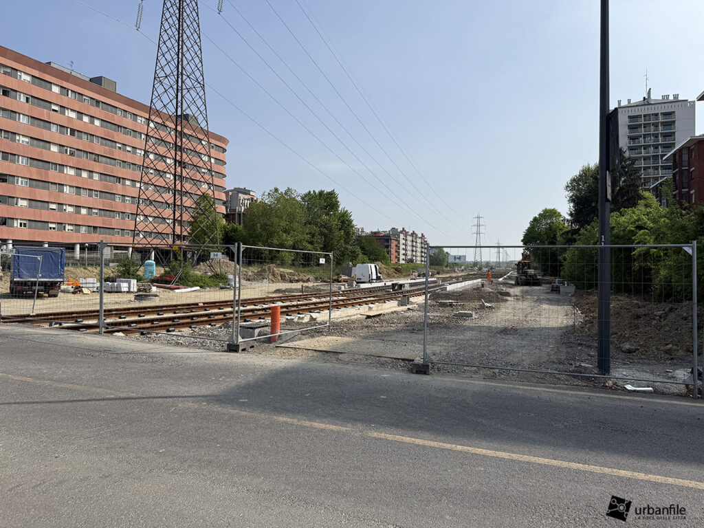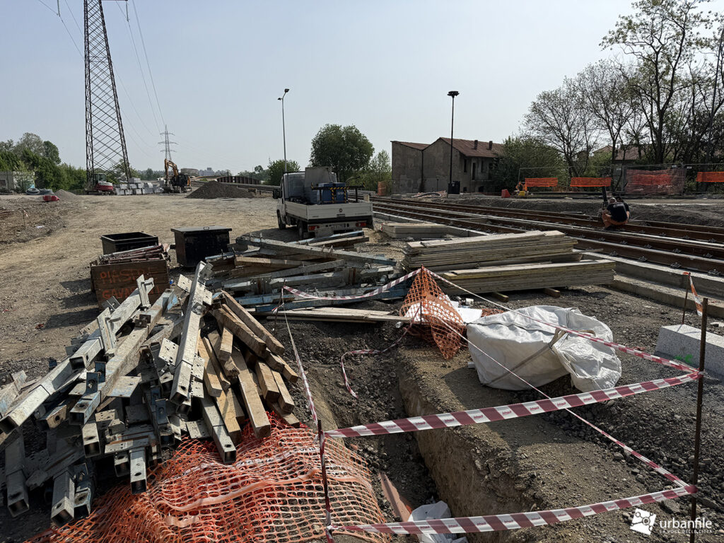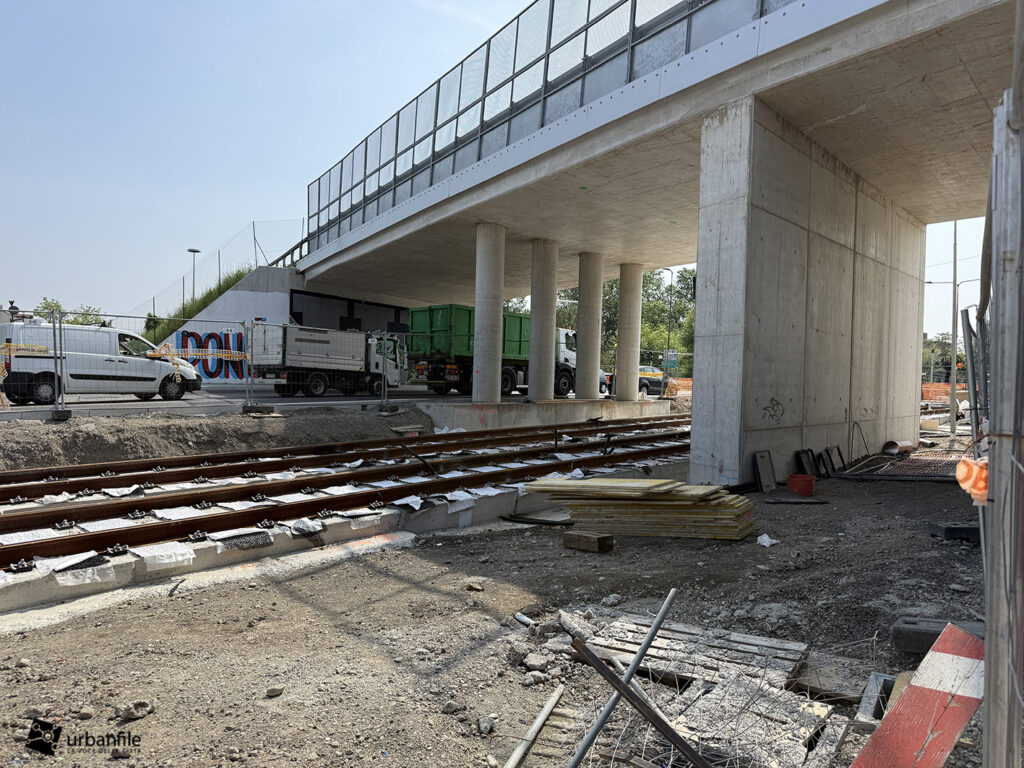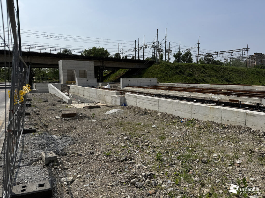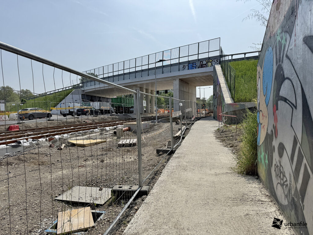 A seguire, si iniziano a intravedere le prime strutture della nuova passerella pedonale, pensata per collegare il capolinea tranviario con la stazione della metropolitana di Cascina Gobba (linea M2), facilitando così l’interscambio tra i due sistemi di trasporto.