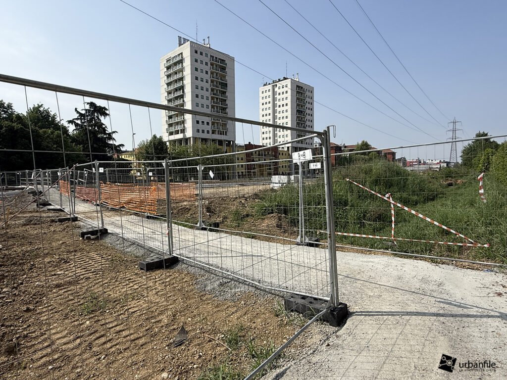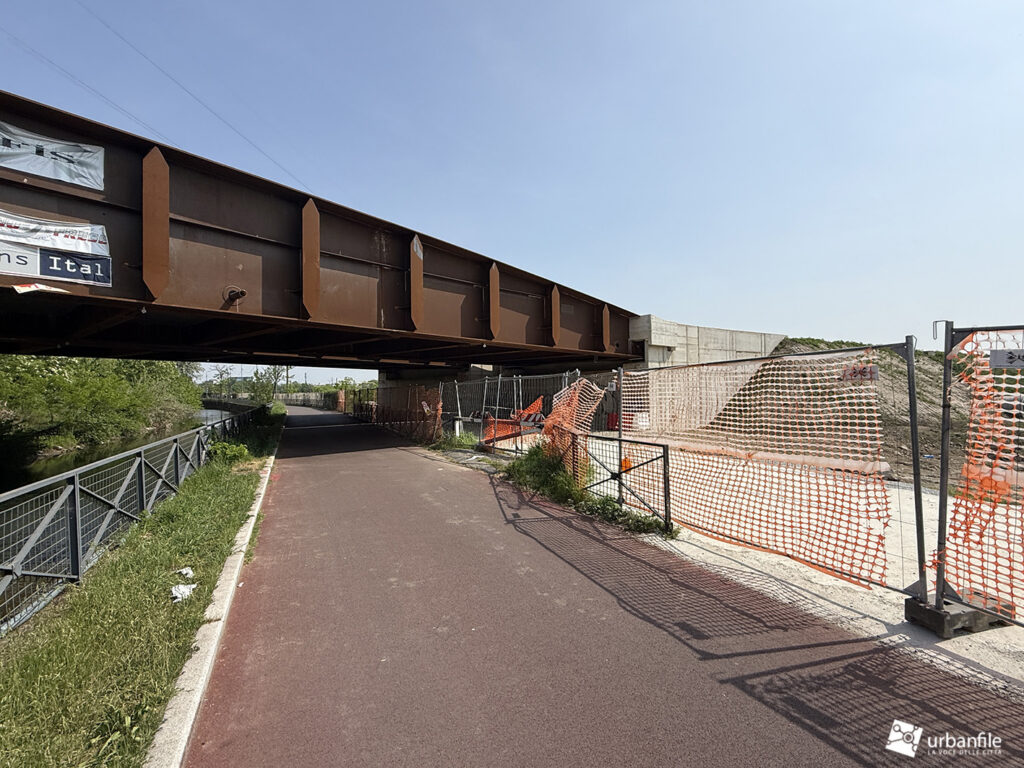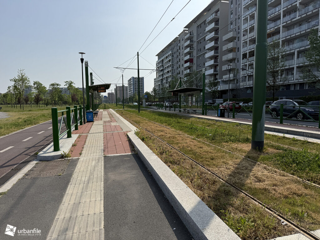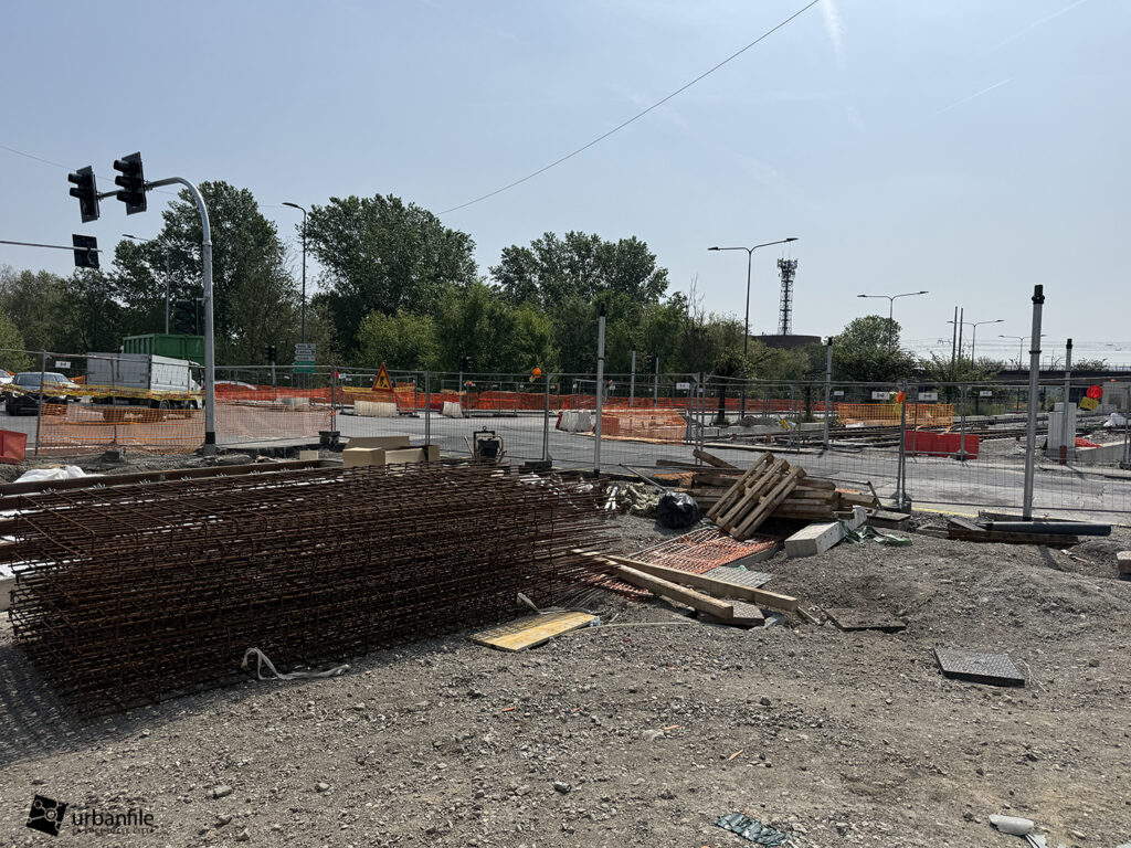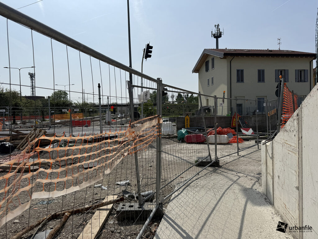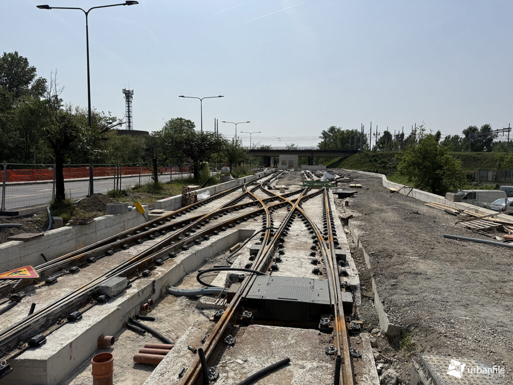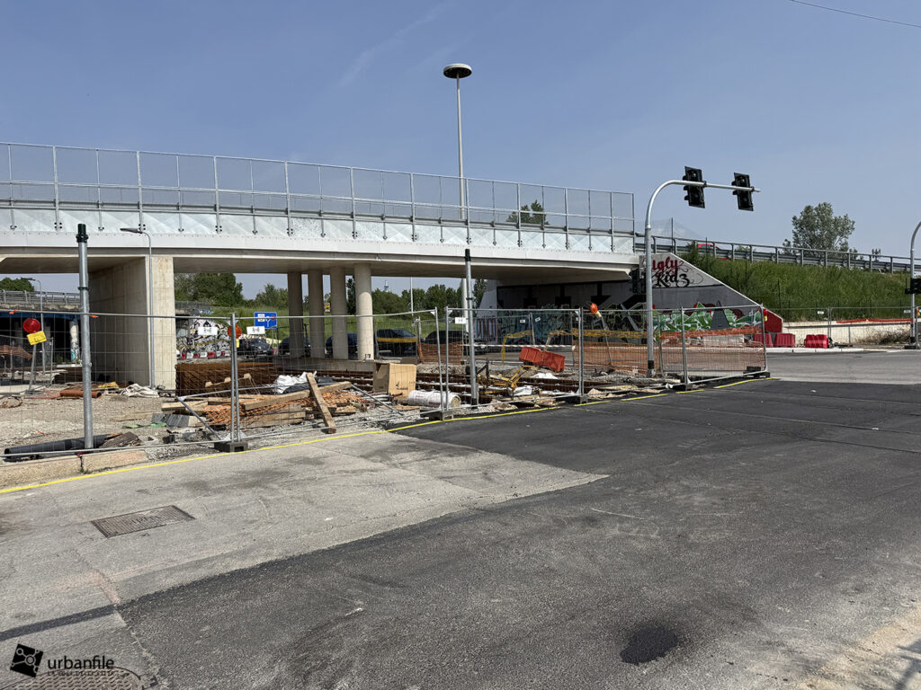 A seguire, si iniziano a intravedere le prime strutture della nuova passerella pedonale, pensata per collegare il capolinea tranviario con la stazione della metropolitana di Cascina Gobba (linea M2), facilitando così l’interscambio tra i due sistemi di trasporto.