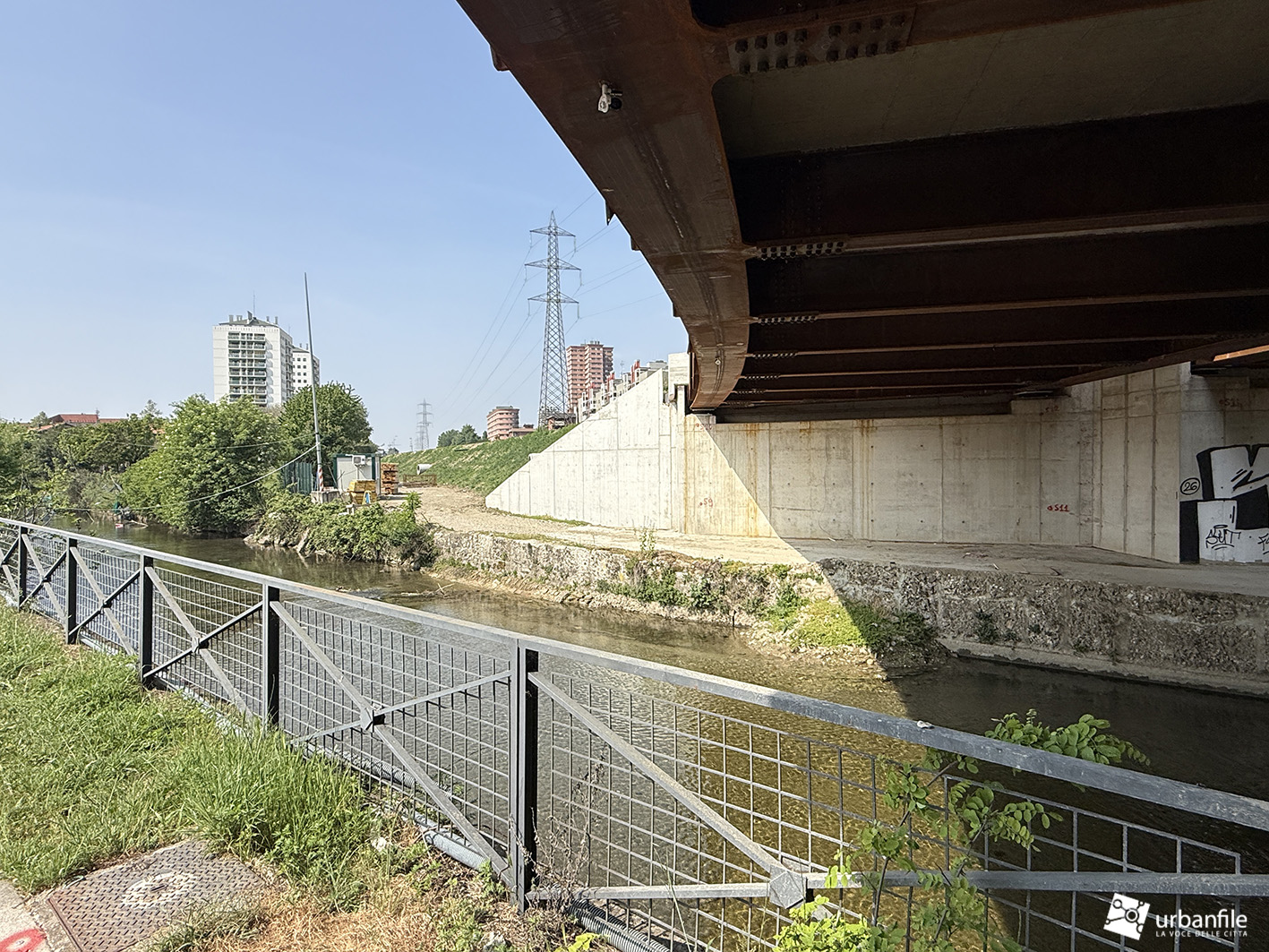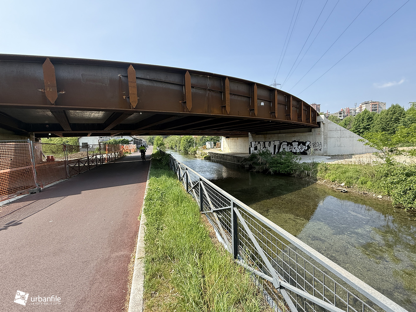 Il nuovo ponte si mostra da via Idro e lungo il Naviglio della Martesana, inserendosi nel paesaggio del canale. Non mancano, purtroppo, i segni del passaggio degli immancabili “scarabocchiatori” seriali, già entrati in azione sulle nuove superfici.