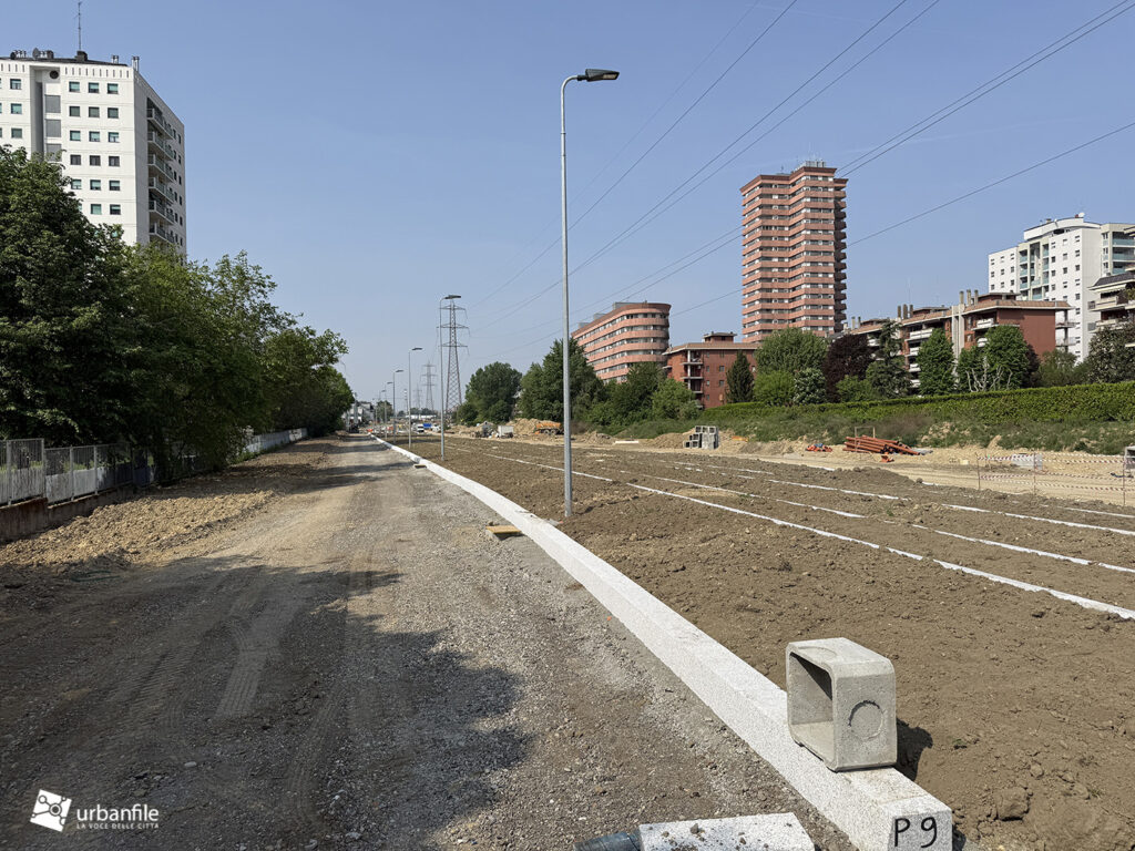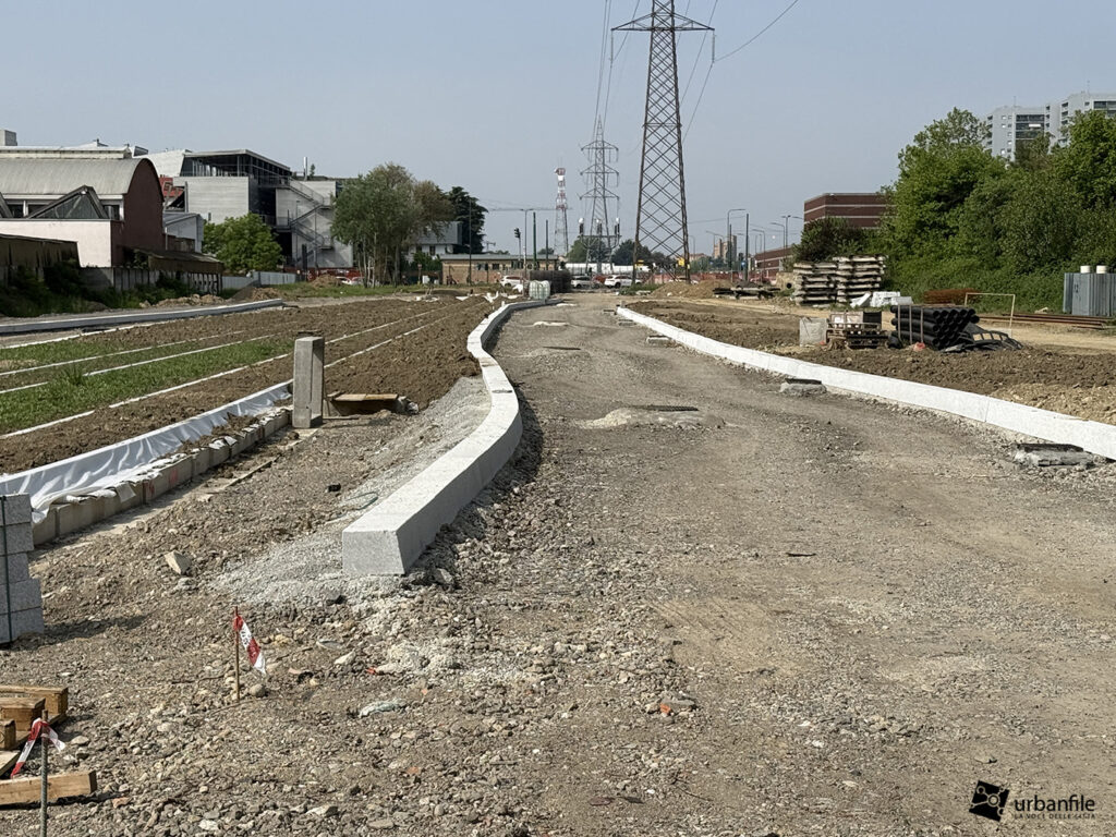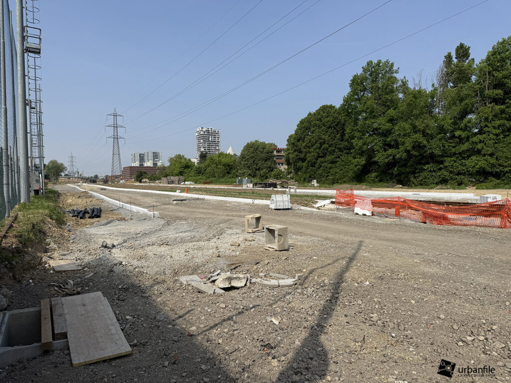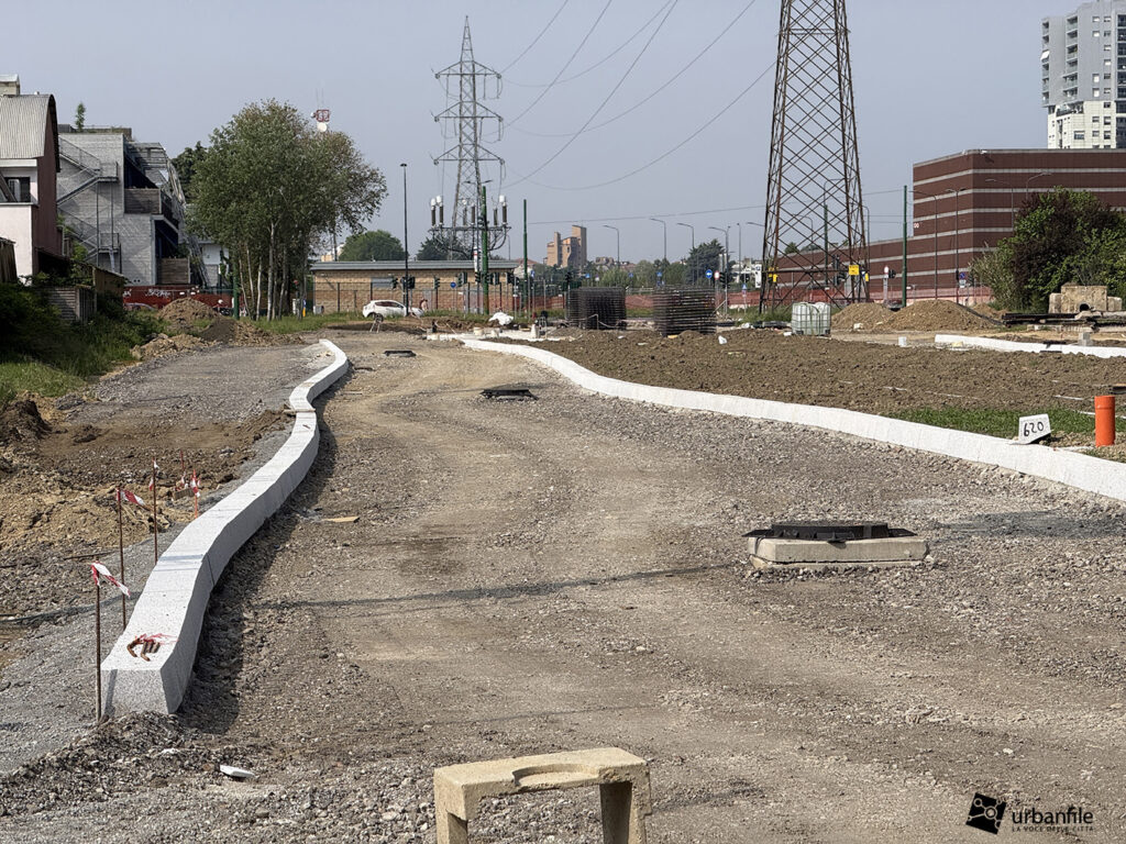 Eccoci infine al futuro capolinea, attualmente in fase di realizzazione lungo il tratto terminale di via Angelo Rizzoli, subito oltre l’incrocio con via Padova.