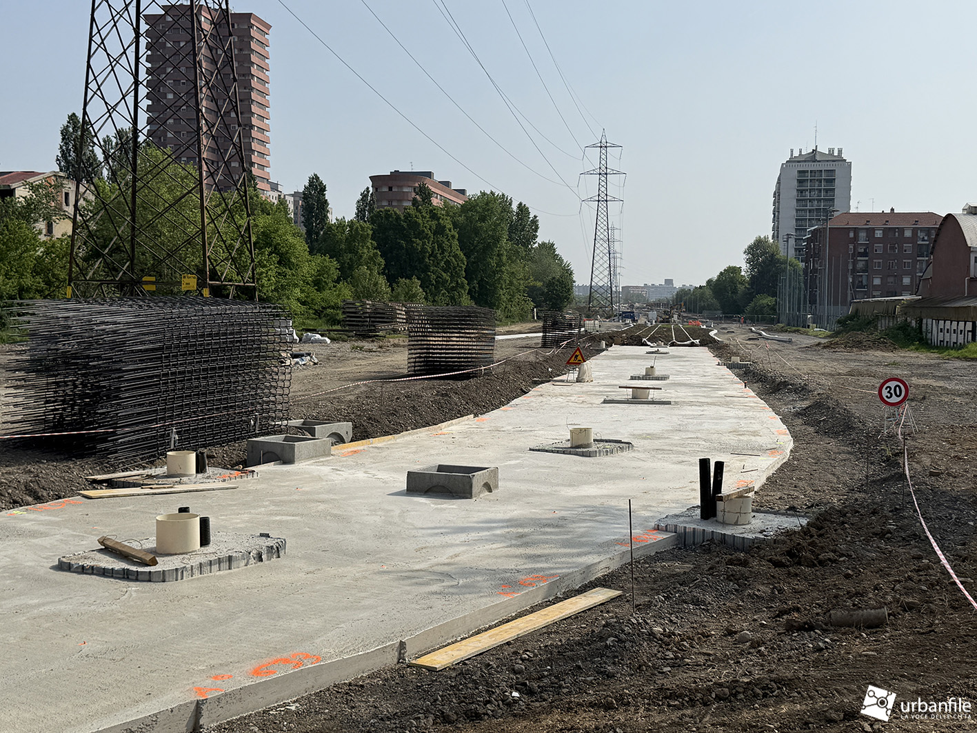 Sullo sfondo prende forma il nuovo ponte sul Naviglio della Martesana, mentre ai lati della nuova arteria è prevista la creazione di un’area verde pubblica che si collegherà al sistema del canale. Un intervento atteso, che consentirà finalmente di collegare direttamente via Idro a via San Mamete, evitando il lungo percorso alternativo oggi necessario.