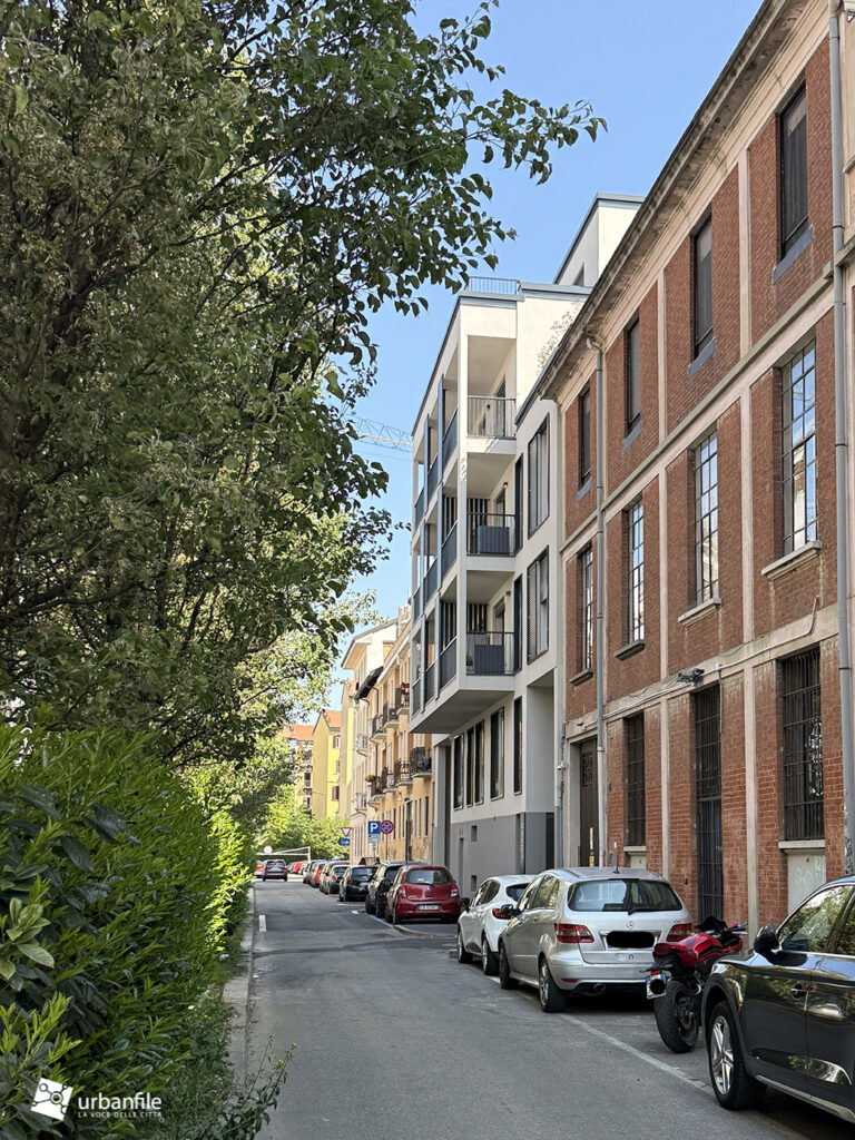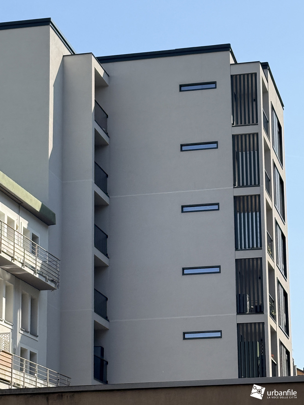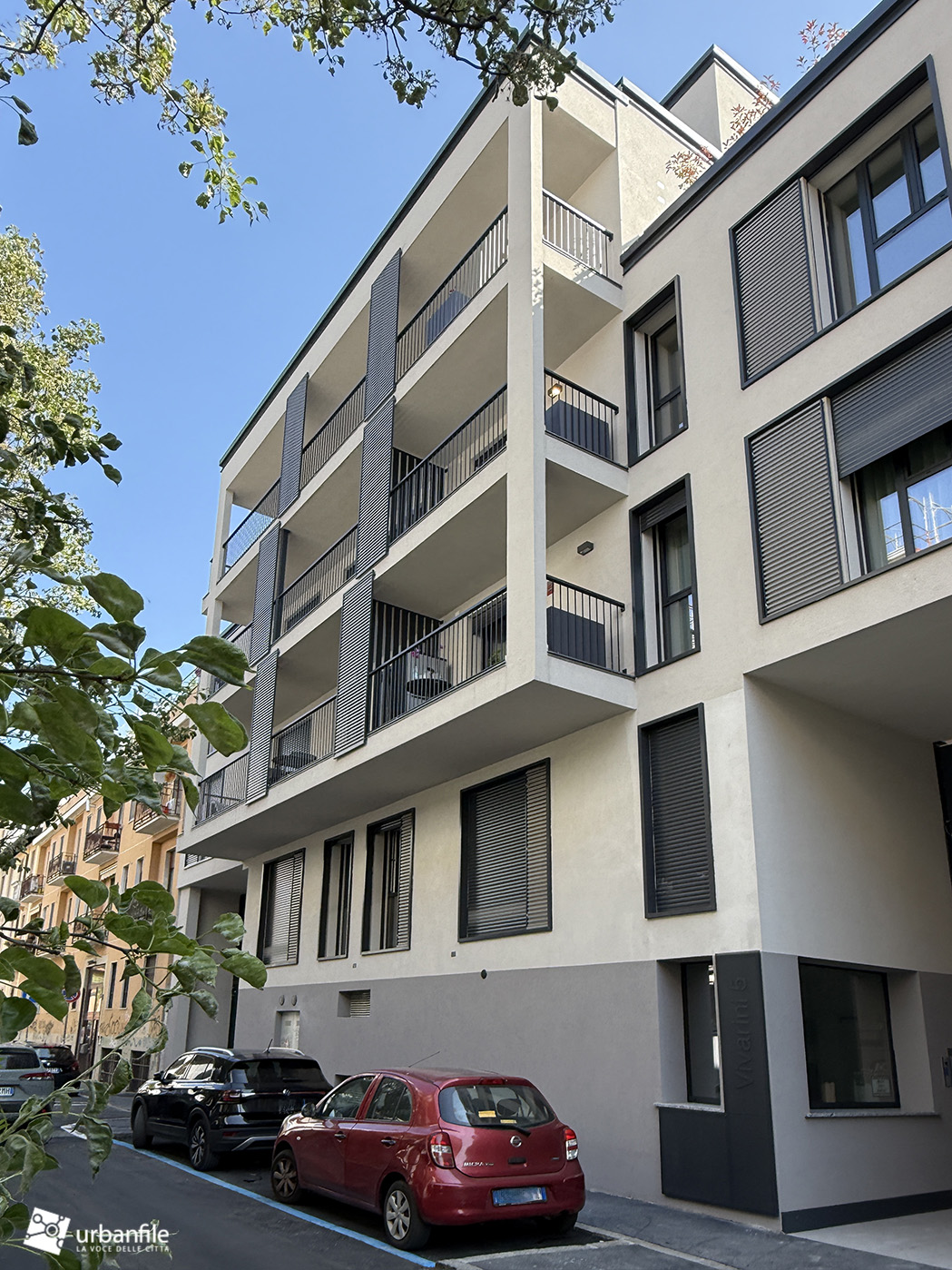 Aprile 2026.Completato ormai da alcuni mesi, il nuovo edificio di via Vivarini 5, una strada del quartiere Cermenate, sorge al posto di un ex insediamento industriale di inizio Novecento, abbandonato da decenni e ormai privo di funzione.