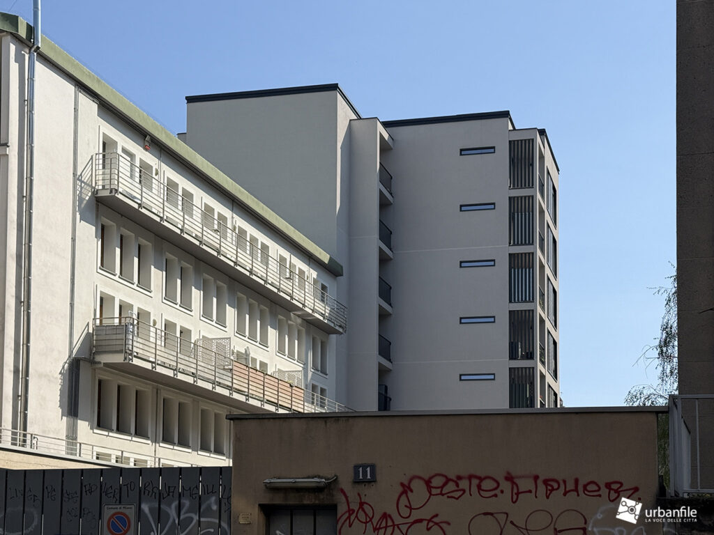 Nel complesso, tra gli edifici del circondario si aprono scorci visivi che lasciano intravedere le volumetrie più alte del nuovo intervento, rivelandone solo parzialmente la presenza all’interno dell’isolato.