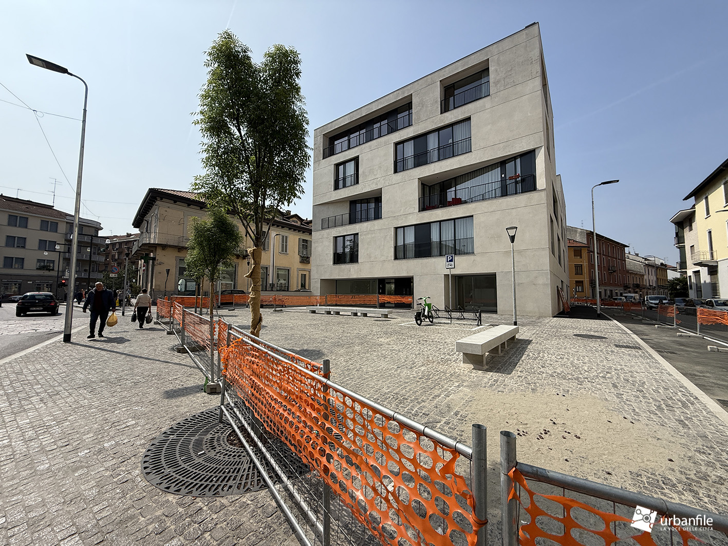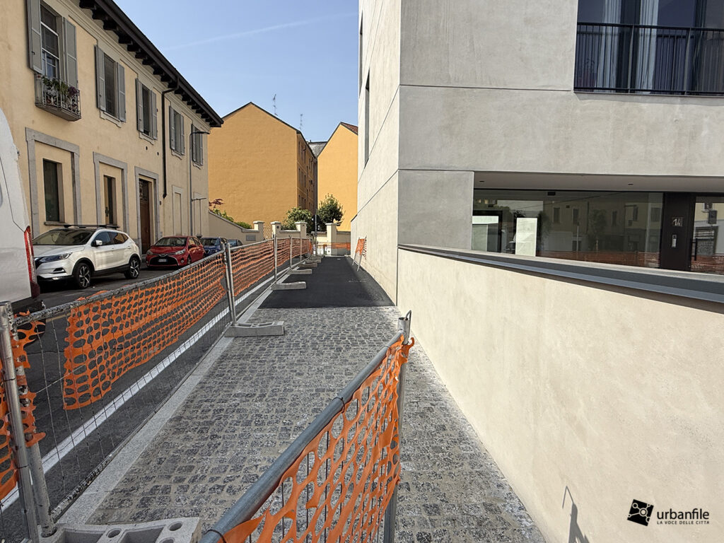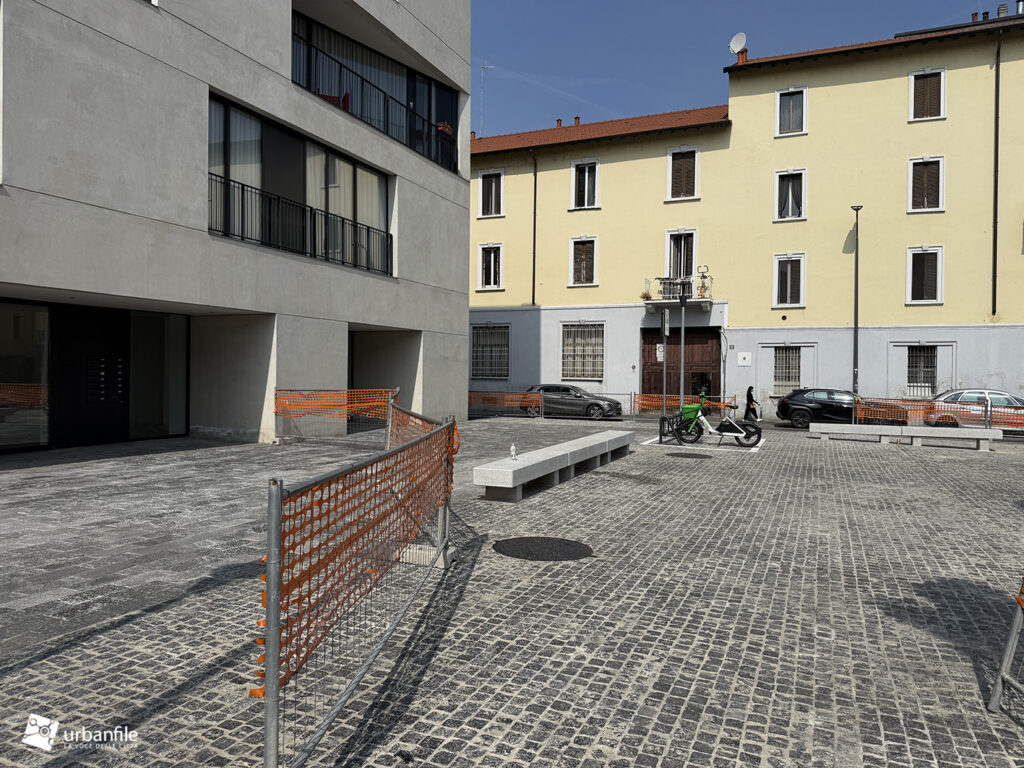 Aprile 2026. Da fine gennaio il cantiere, ormai completato, è in attesa di venire aperto al passaggio dei cittadini. Stiamo parlando della piazzetta antistante il nuovo edificio residenziale di via Adriano 1.