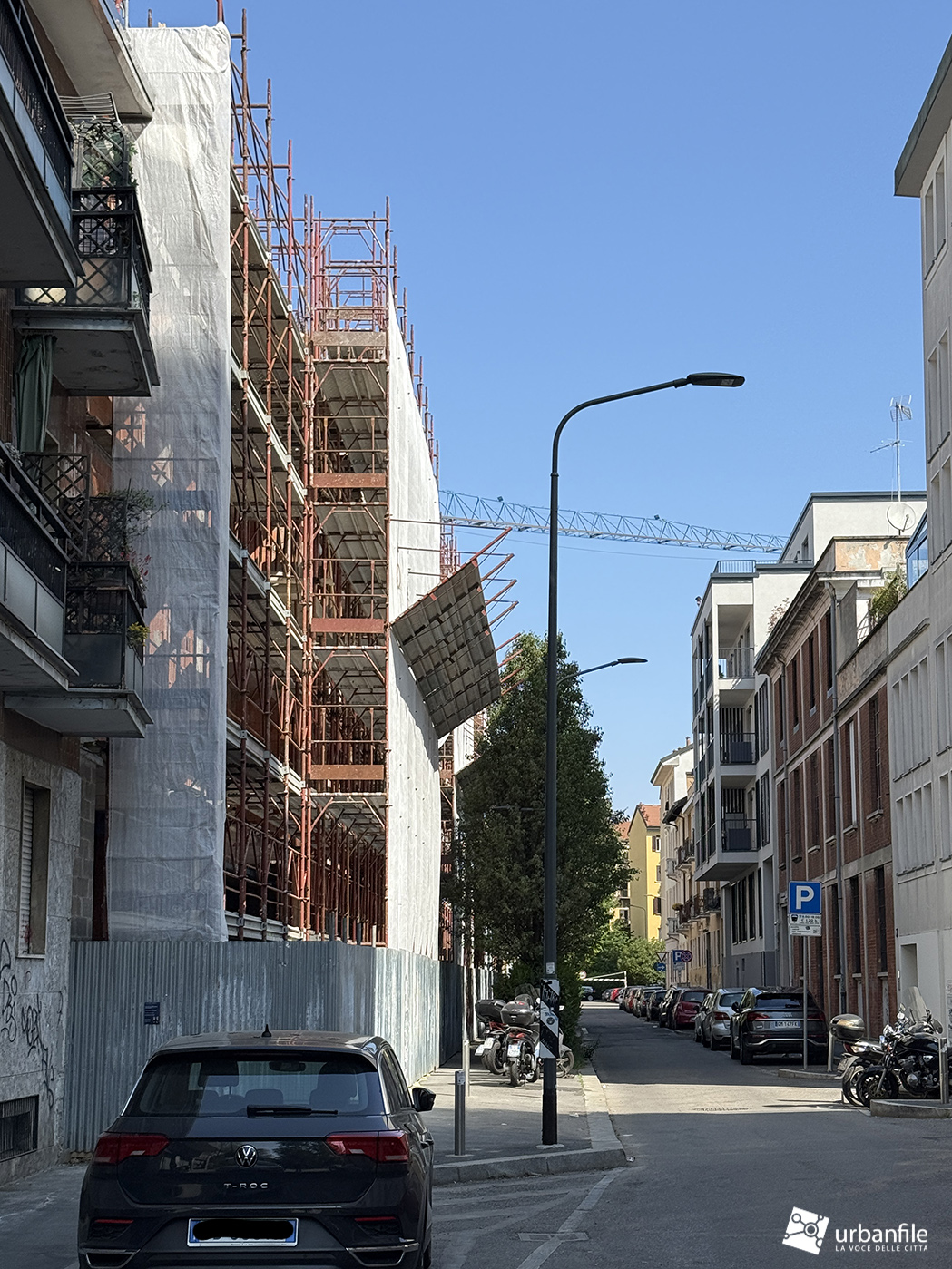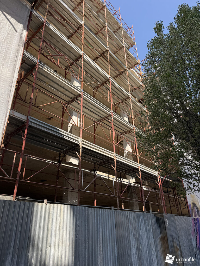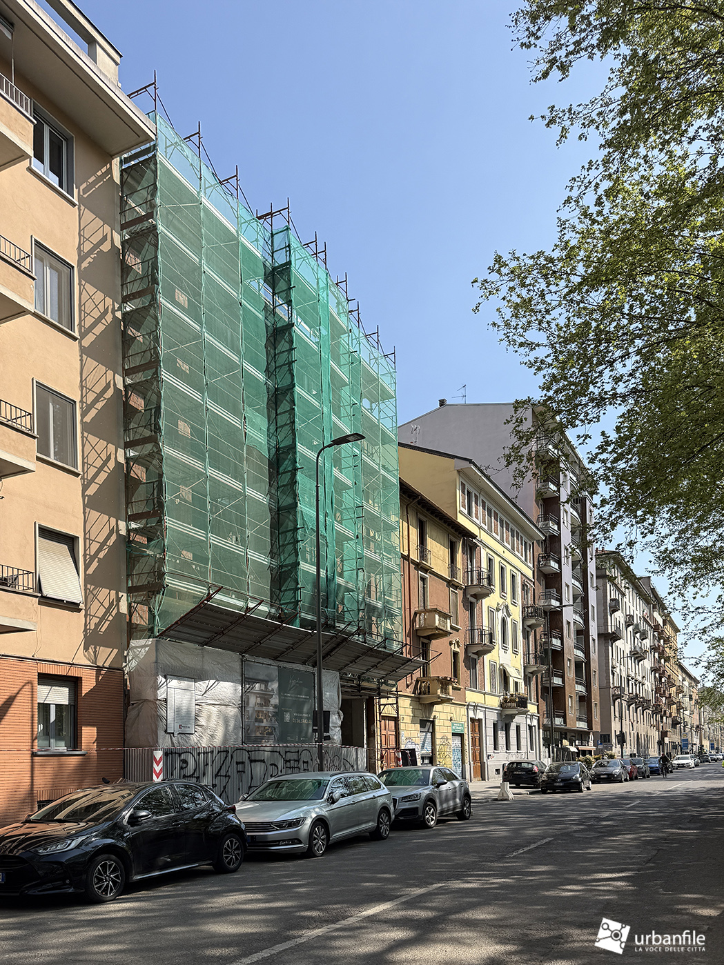 Dopo anni di stallo, lo scorso anno sono finalmente iniziati i lavori di rimozione delle strutture abusive nel piccolo edificio all’angolo tra via Isimbardi e via Nicola Palmieri.