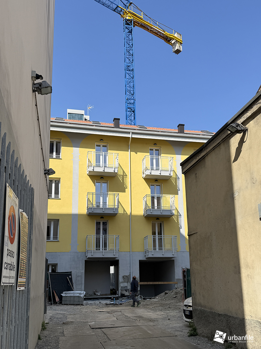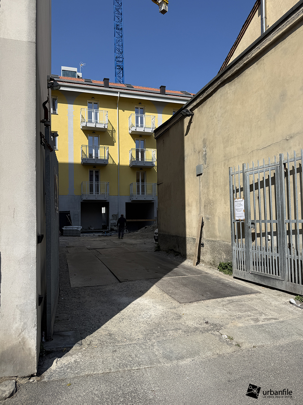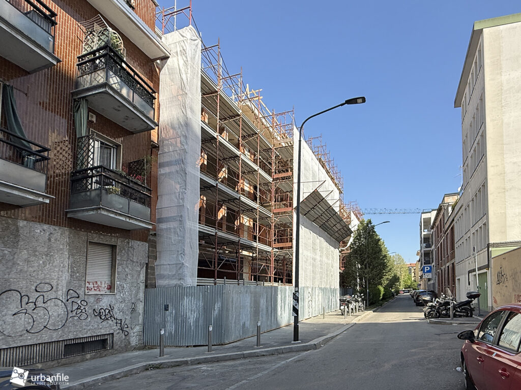 Dopo anni di stallo, lo scorso anno sono finalmente iniziati i lavori di rimozione delle strutture abusive nel piccolo edificio all’angolo tra via Isimbardi e via Nicola Palmieri.