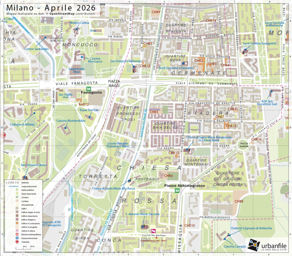 Aprile 2026. Abbiamo raccolto un po’ di foto da alcuni cantieri sparsi nel territorio di Chiesa Rossa che possiamo racchiudere da viale Tibaldi a poco oltre piazza Abbiategrasso.