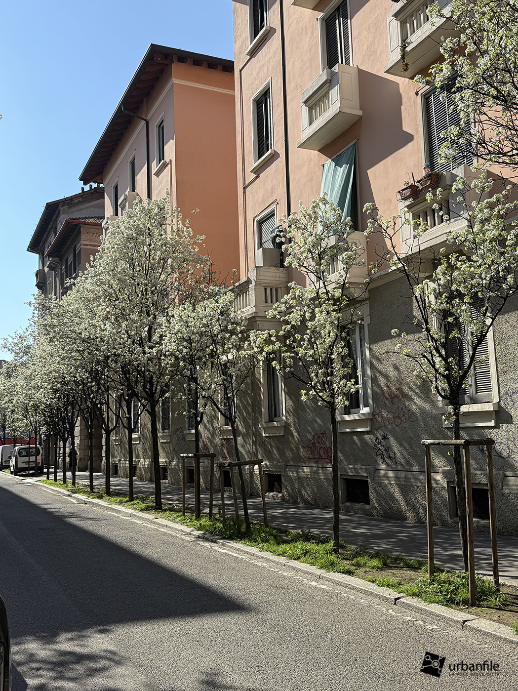 Vorrei citare altri due esempi che dimostrano come la presenza e piantumazione di alberi, cambi totalmente in positivo una via, ovvero via Pezzotti, in zona Vigentino oppure via Colletta a porta romana, nel tratto più a sud; quest’ ultima via, in particolare, nei mesi primaverili, offre uno spettacolare prospettiva verde, davvero rara a Milano, quasi una “Bolgheri milanese”.