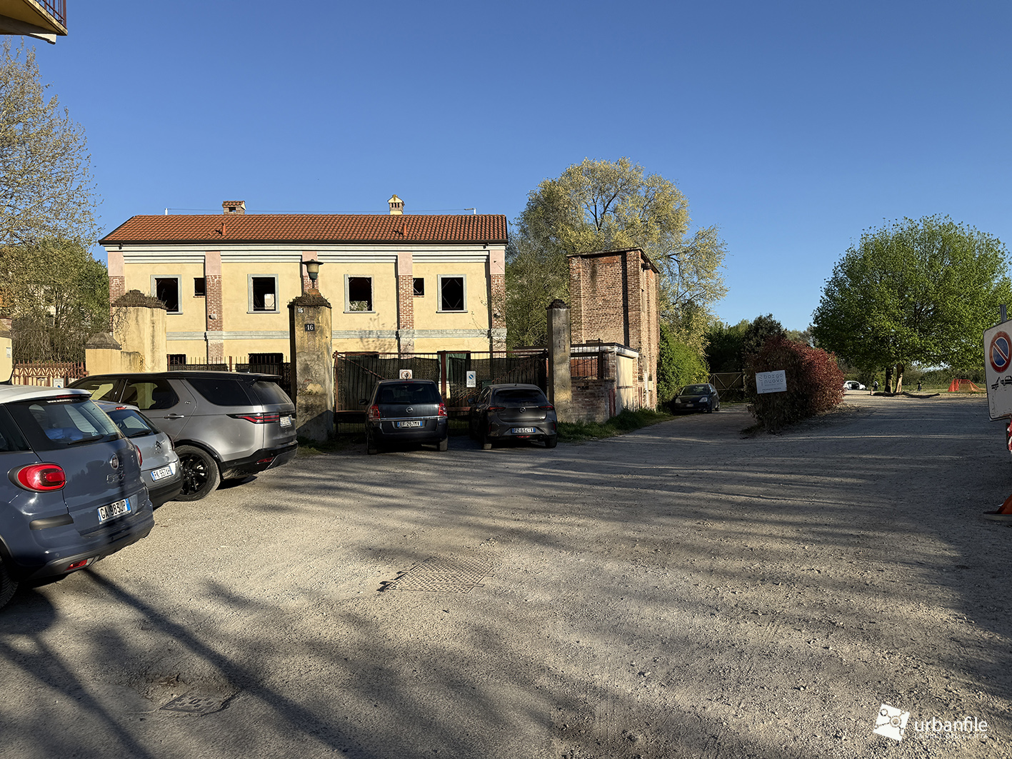 Oggi è visibile solo uno degli edifici affacciati sulla strada, mentre all’interno si sviluppa una lunga ala che si estende fino al canale del cavo Tecchione, percepibile solo attraverso le immagini satellitari di Google Maps.