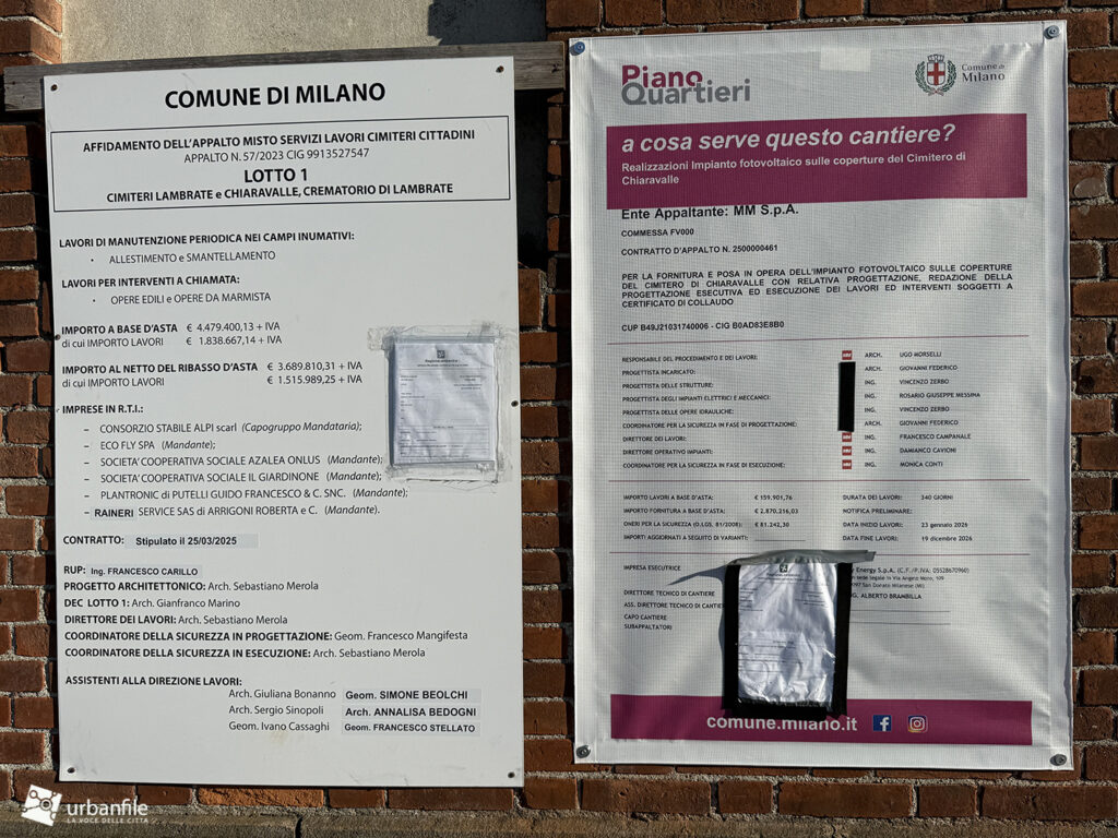 Cominciamo col cantiere presente dal 2 febbraio 2026, dove sono in corso i lavori per la realizzazione di un nuovo impianto fotovoltaico sulle coperture del Cimitero di Chiaravalle rafforzando il percorso della città verso una produzione energetica più sostenibile. Al contempo sono anche in corso i consueti interventi di manutenzione straordinaria.