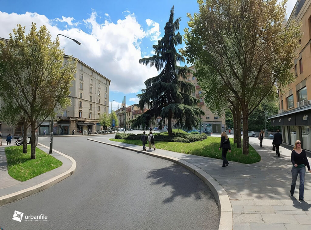 Basterebbe una riorganizzazione ordinata dei parcheggi, l’ampliamento dei marciapiedi e la pedonalizzazione delle porzioni inutili al traffico automobilistico — interventi semplici, degni di una città civile e vivibile. Dove possibile, si potrebbero piantare nuovi alberi: lo slargo centrale potrebbe accogliere un grande esemplare con un’aiuola alla base, rafforzando il carattere di piazza.