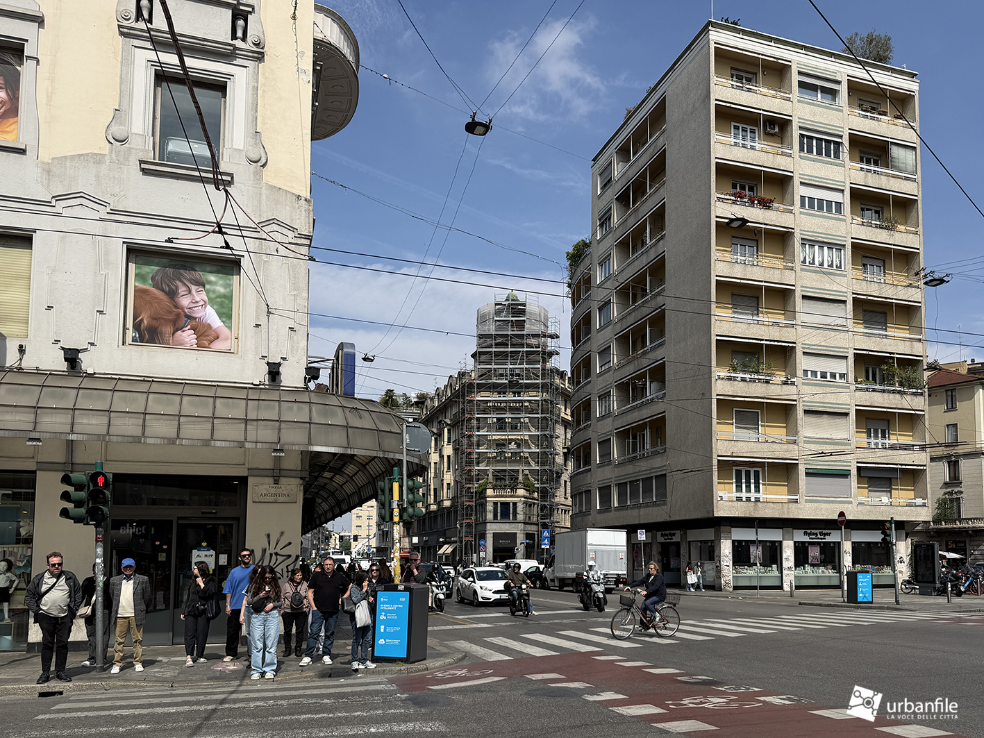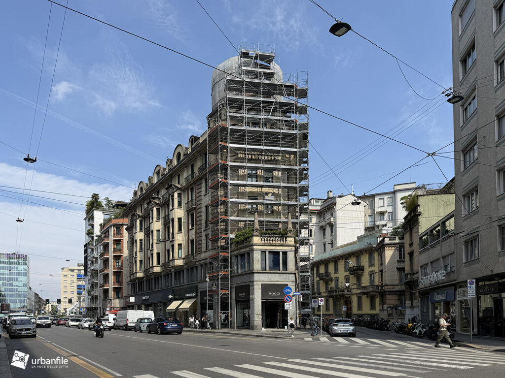 L’edificio in stile eclettico-déco che si trova nell’acuto lotto compreso tra Corso Buenos Aires (civico 88) e via Annibale Caretta (civico 1) dotato di cupoletta, è in fase di restauro e parte della facciata e della graziosa cupola è stata coperta dalle impalcature.