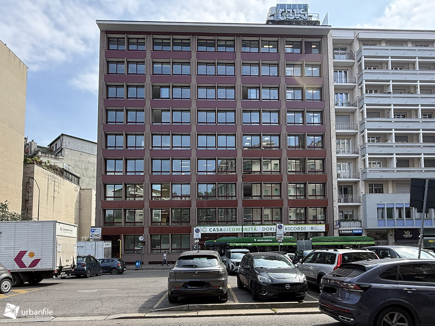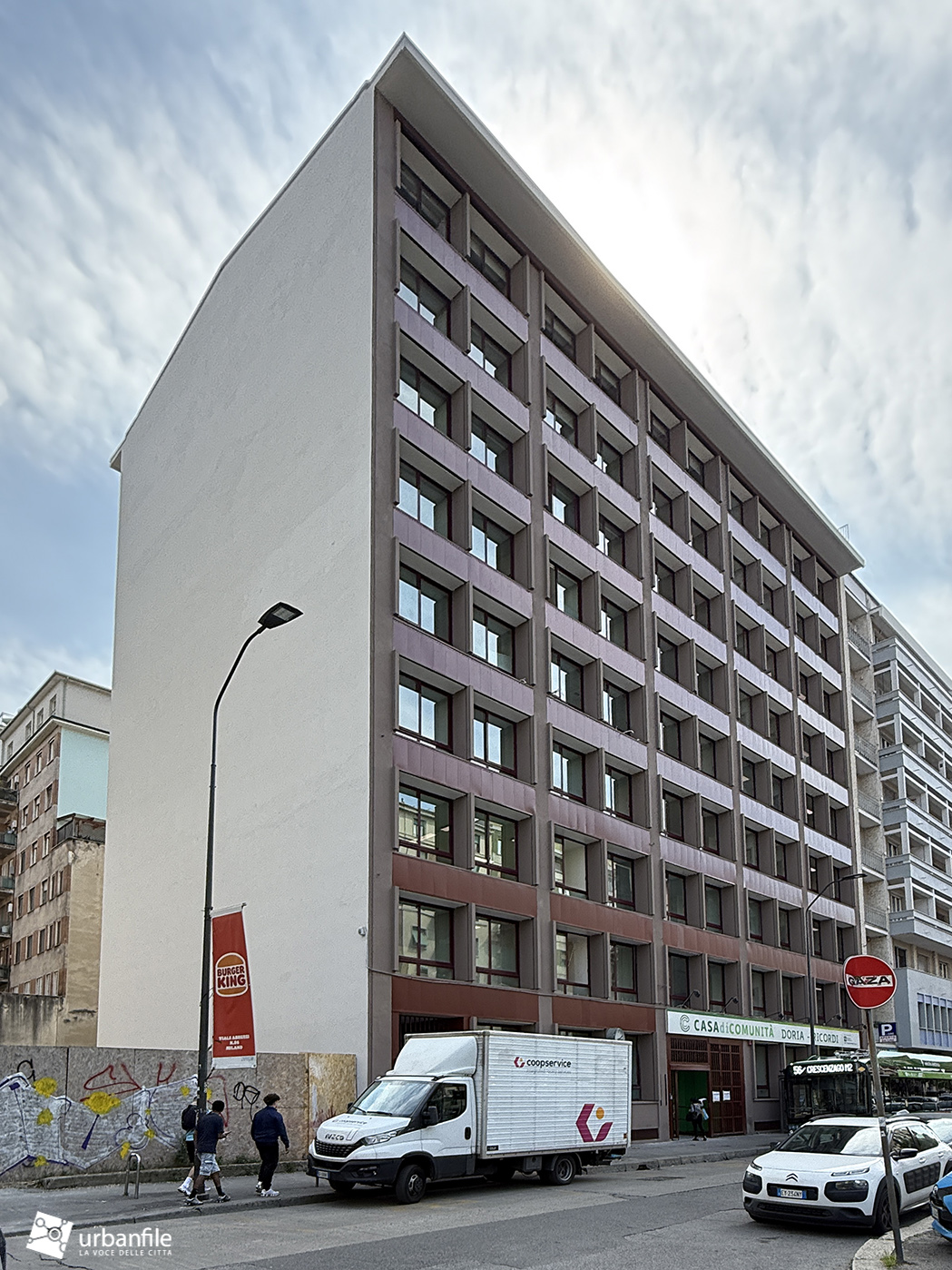 L’edificio sede della ASL Ufficio Scelta e Revoca (anche Poliambulatorio Doria) di viale Andrea Doria 52, costruito nel 1963 su progetto degli architetti Augusto Magnaghi Delfino e Mario Terzaghi è stato riqualificato con un intervento di restauro delle facciate. Come si vede l’intervento ha riportato il palazzo al suo stato originario, o quasi.