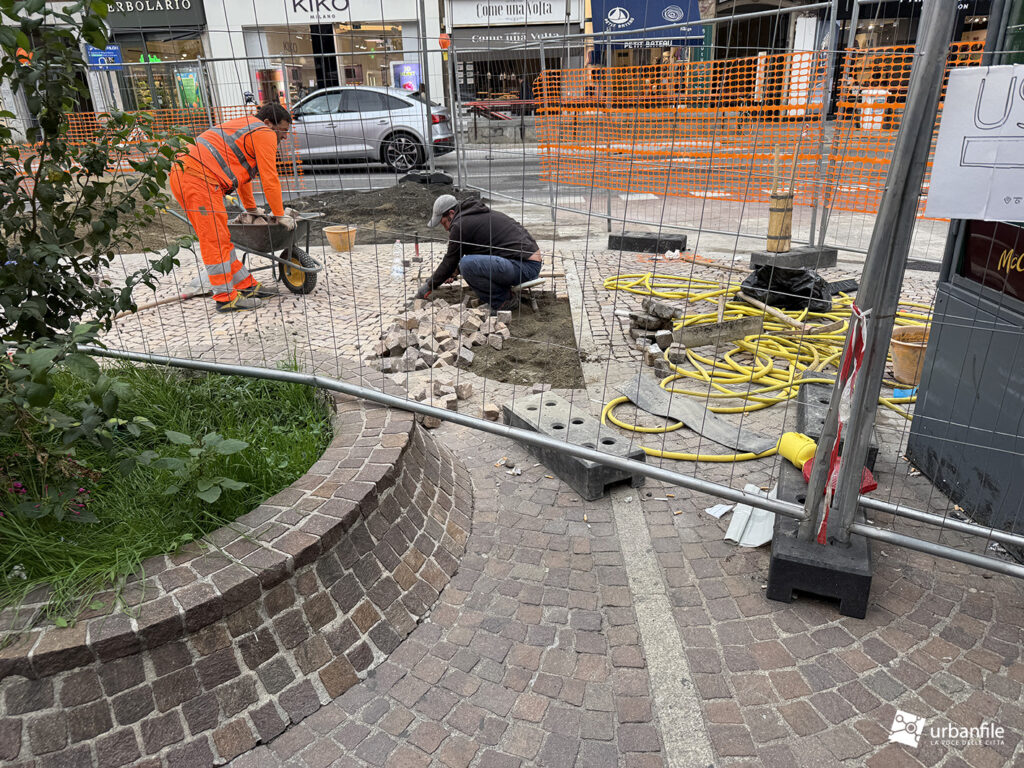 Oramai da qualche mese i lavori all’arredo urbano in piazza De Angeli sono terminati. Un semplice riordino della viabilità, nuove aiuole e nuove piantumazioni hanno reso la piazza più bella e gradevole. Insieme al verde risistemato è stato pavimentato in pietra il marciapiede e collocate delle “fioriere” in metallo con panchina incorporata in legno. Mentre…